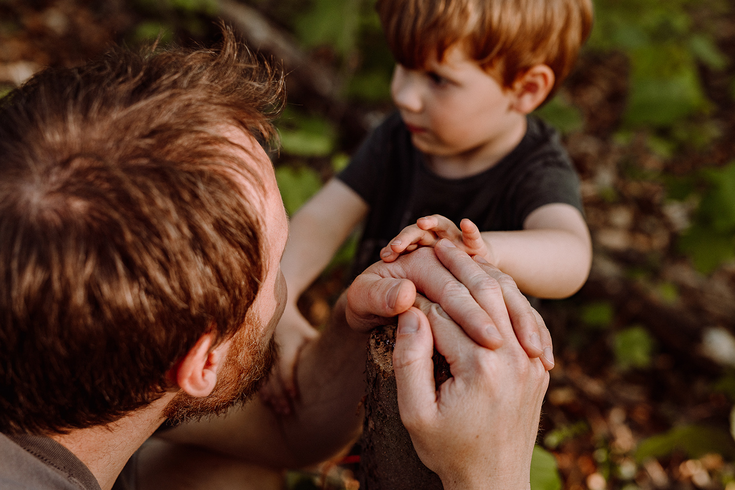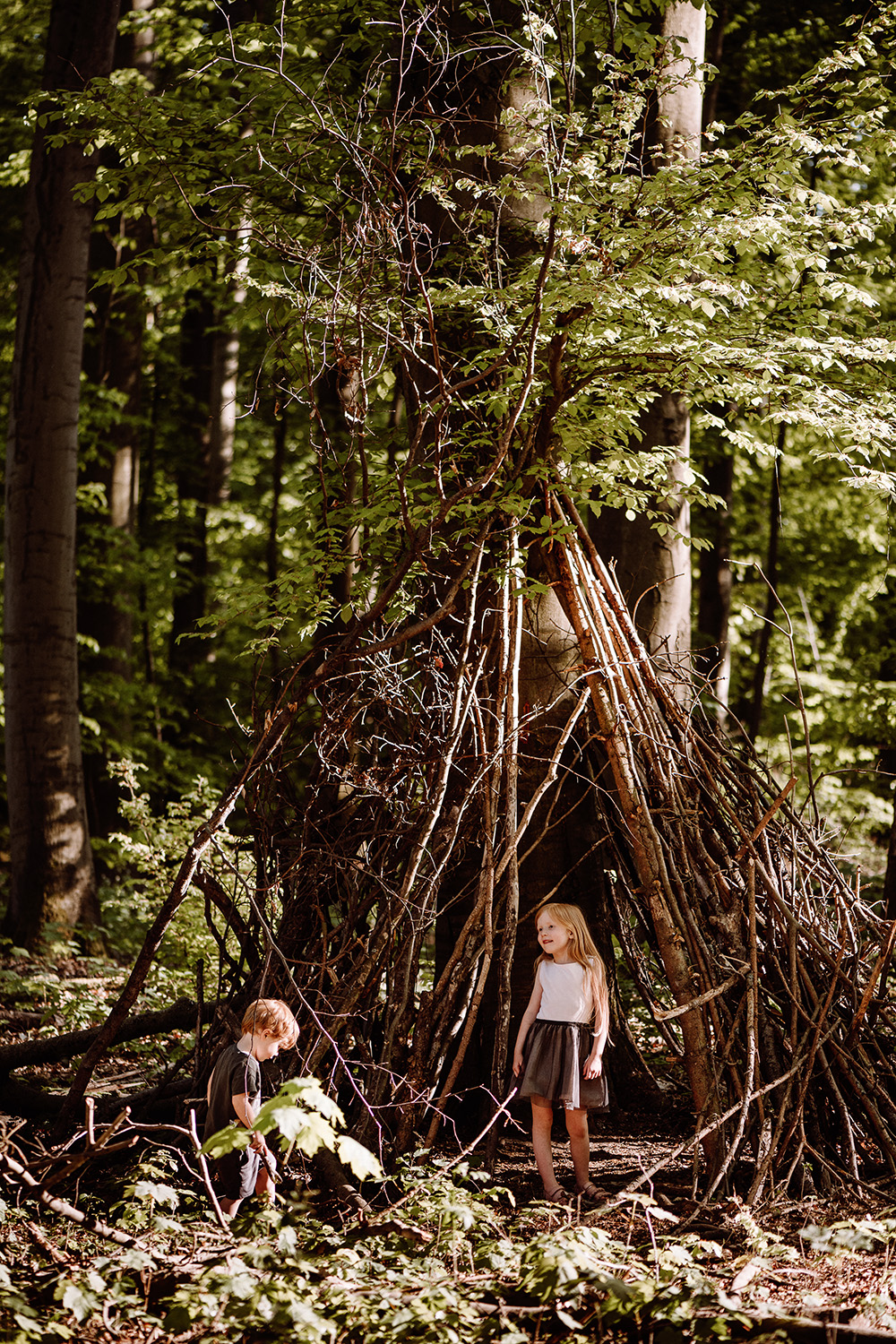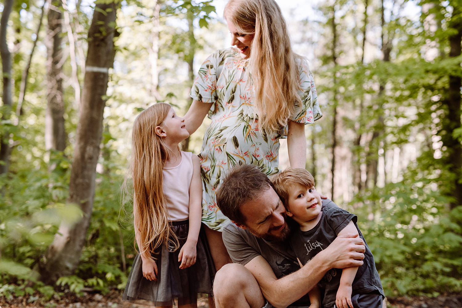 Diesmal waren wir an einem der Lieblingsorte der Familie. Sie sind ganz oft in diesem Wald, wo Kinder sehr viel zu entdecken haben. Neugierige Blicke, tolle Spielideen und Freude pur – das erlebe ich im Überfluss bei solchen Fotoshootings! Für mich als Fotografin ist es ein Traum, denn so habe ich die Möglichkeit, absolut natürliche Fotoaufnahmen zu machen. Genau das gefällt auch den Eltern, die zu mir kommen.