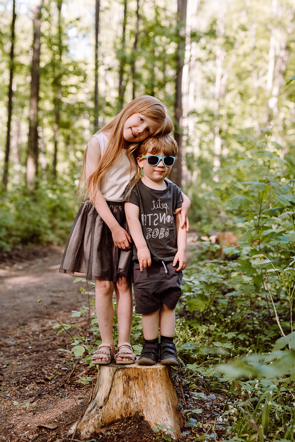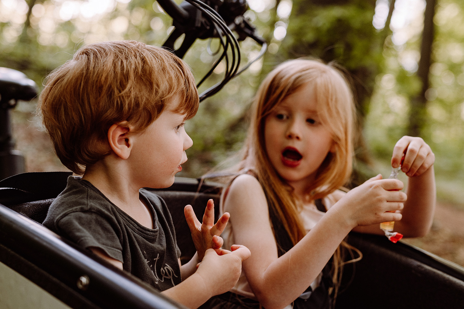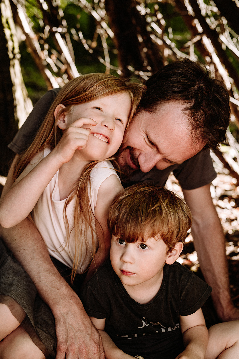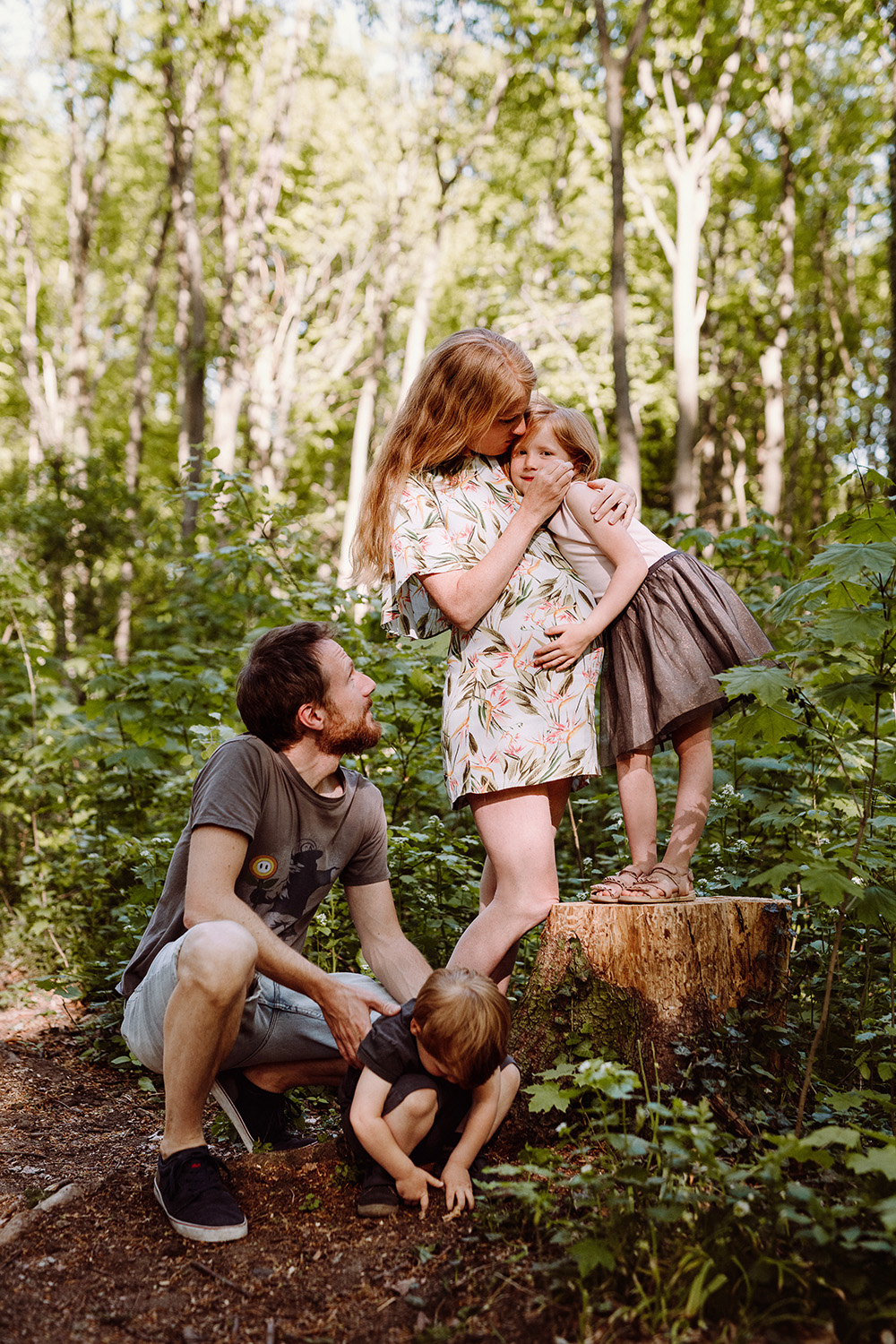 Diesmal waren wir an einem der Lieblingsorte der Familie. Sie sind ganz oft in diesem Wald, wo Kinder sehr viel zu entdecken haben. Neugierige Blicke, tolle Spielideen und Freude pur – das erlebe ich im Überfluss bei solchen Fotoshootings! Für mich als Fotografin ist es ein Traum, denn so habe ich die Möglichkeit, absolut natürliche Fotoaufnahmen zu machen. Genau das gefällt auch den Eltern, die zu mir kommen.