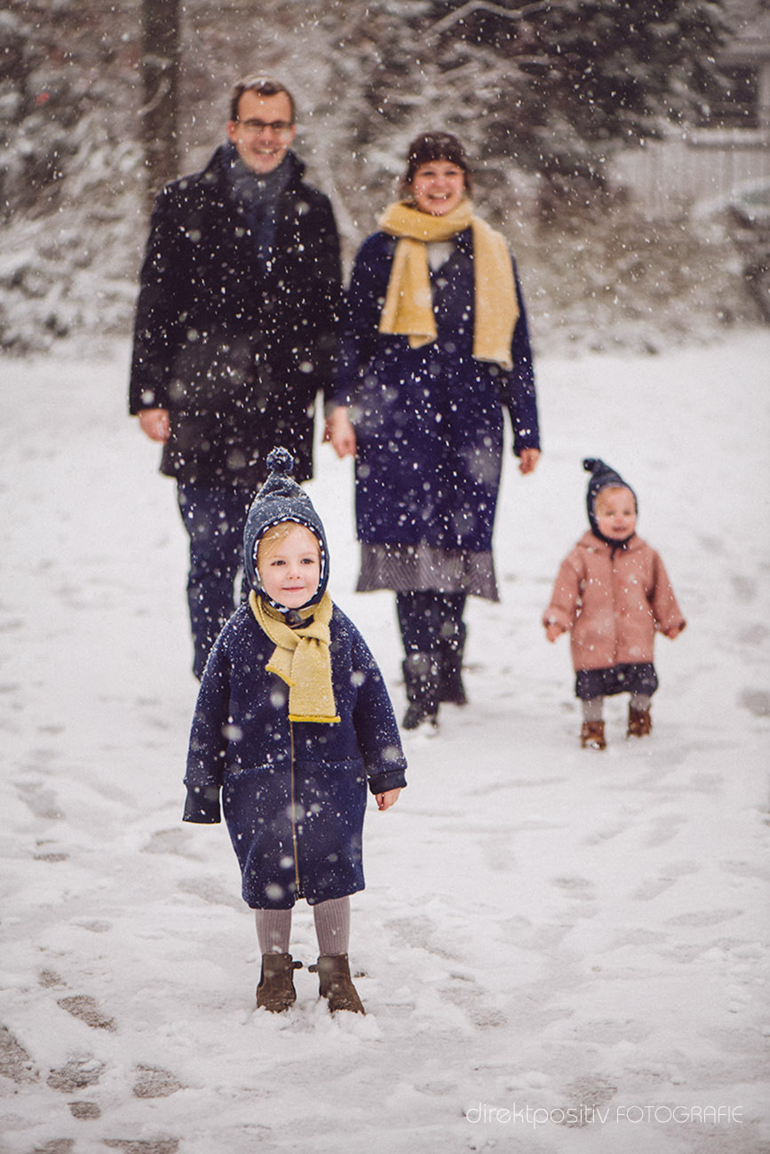Weil es genau an diesem Tag und genau um diese Uhrzeit passieren sollte! Ein wunderschönes Geschenk zum 2. Advent war das. Die ganze Stadt wurde innerhalb von einer halben Stunde in einen weißen Schneemantel umhüllt. Die großen, flauschigen Schneeflocken fielen und fielen immer weiter. Was für eine Freude für die Kinder! Aber auch die Eltern waren glücklich darüber, dass solche märchenhaften Bilder bei unserem Fotoshooting entstanden sind.