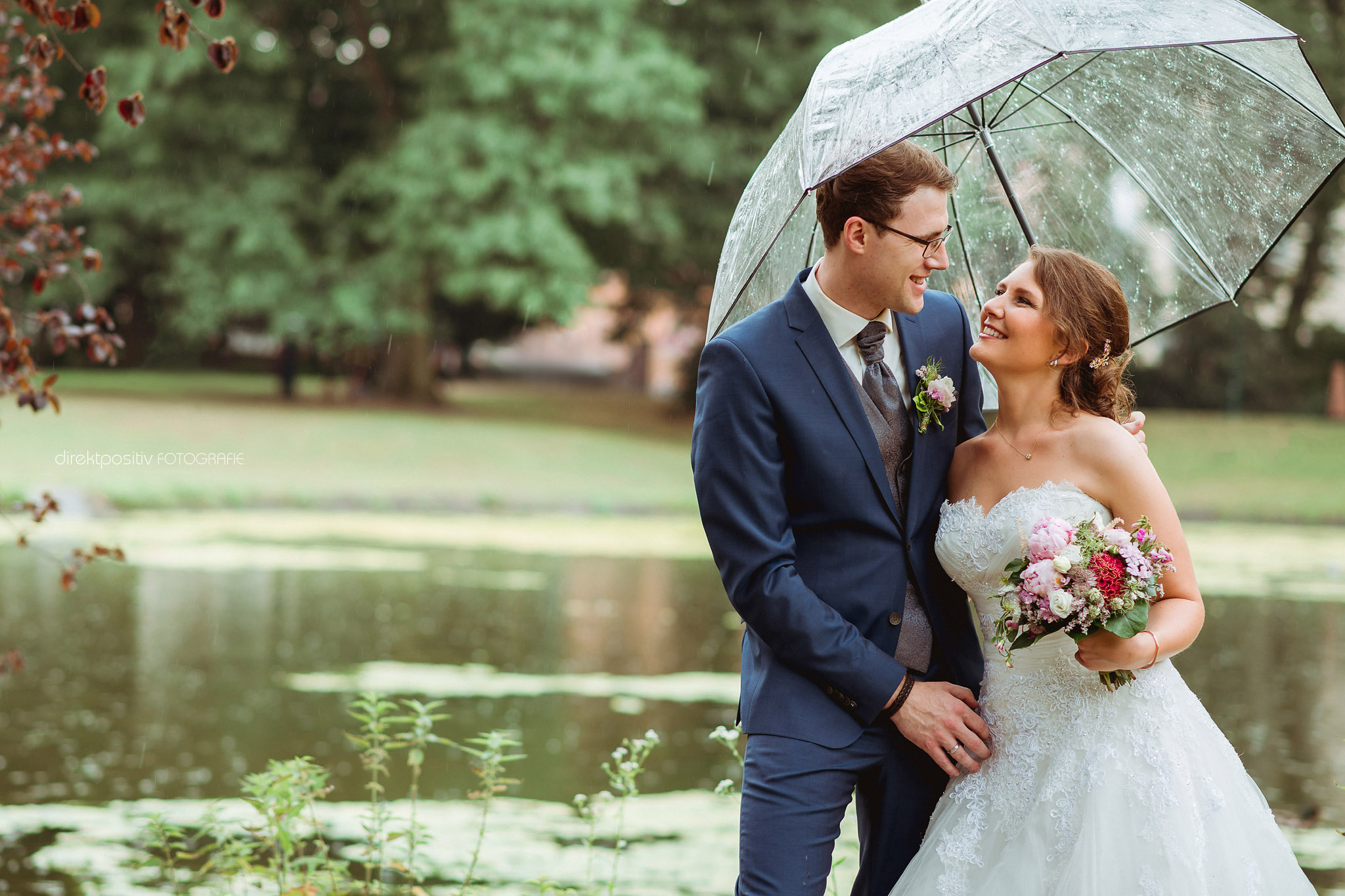 Im Nachhinein freue ich mich sogar richtig darüber, denn dank des Regens entstanden diese wunderschönen Regenfotos. Keine dunklen Wolken am Himmel hätten es je geschafft, die Freude über das Glück der Beiden zu trüben. Es wurde gestrahlt, gelacht, gesungen, getanzt und gefeiert was das Zeug hält!